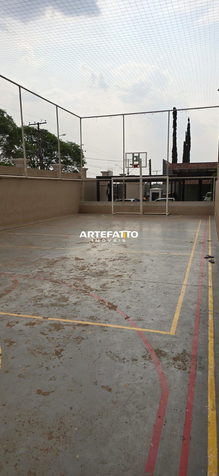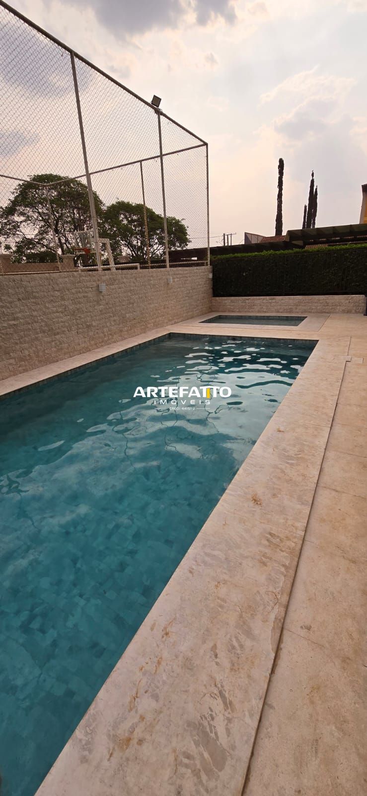 Área de lazer com piscina, quadra, salão de festas