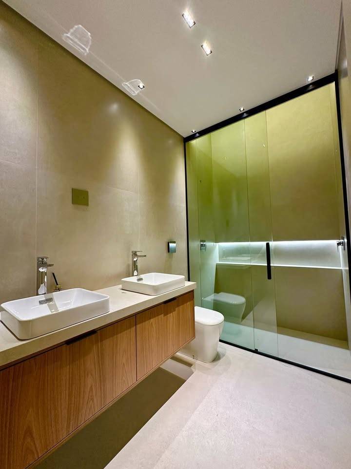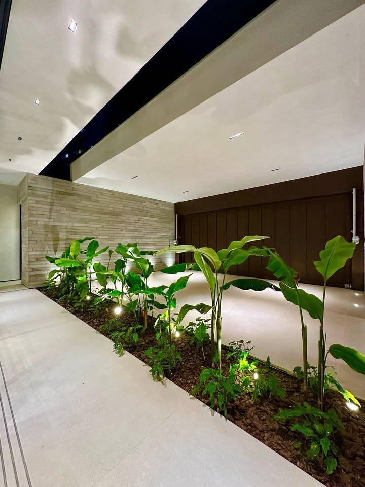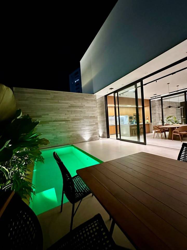 Essa é uma casa moderna e automatizada à venda no Jardim Santana, em Franca-SP, com 294m² de terreno e 230m² de área construída. A residência conta com 3 suítes espaçosas, escritório privativo, cozinha integrada e uma área de lazer completa, incluindo piscina central com iluminação, hidro e aquecimento. O interior da casa possui acabamentos em madeira, com detalhes arquitetônicos em concreto e alumínio. Além disso, a casa é equipada com aquecimento solar, sistema de som embutido e irrigação automatizada no jardim. Também há pré-instalação para carregamento de carro elétrico e 3 vagas de garagem coberta.