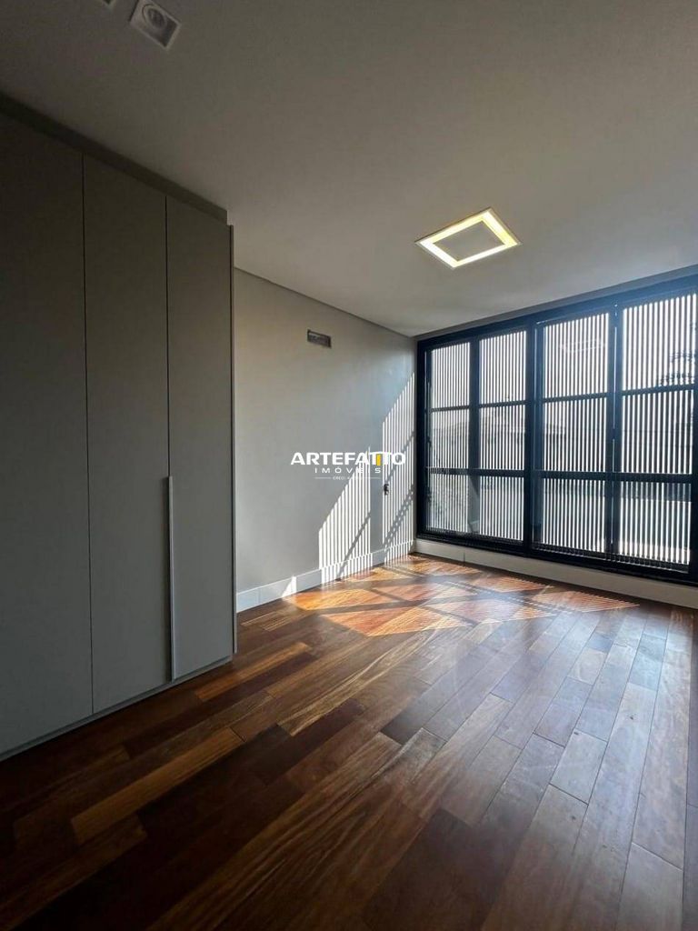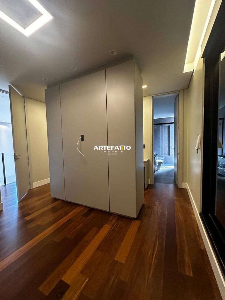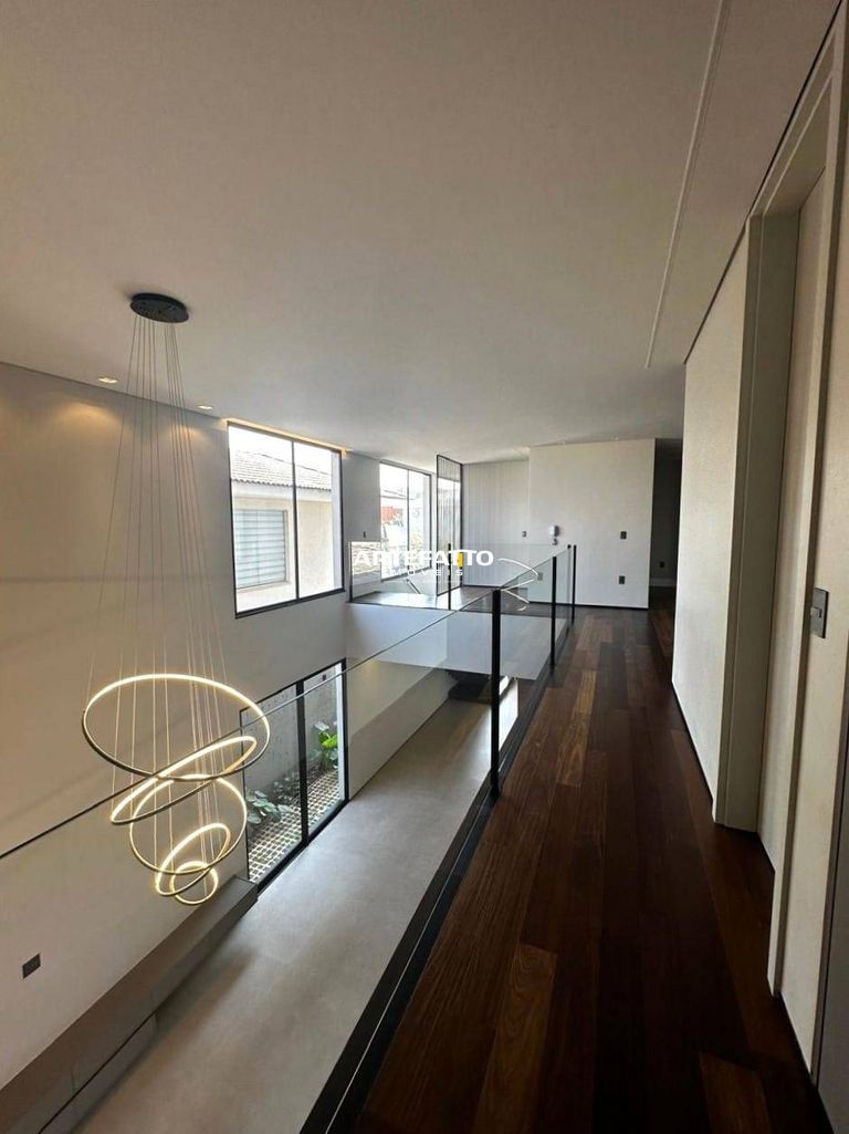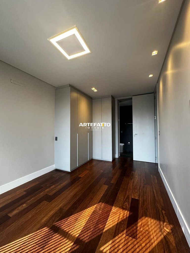 O imóvel tem 4 quartos, sendo 4 suítes, possui 5 banheiros, 2 salas e 4 vagas de garagem.