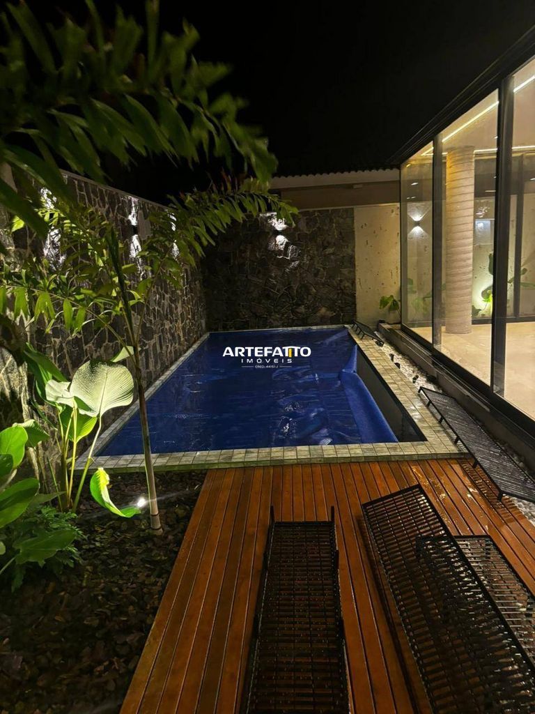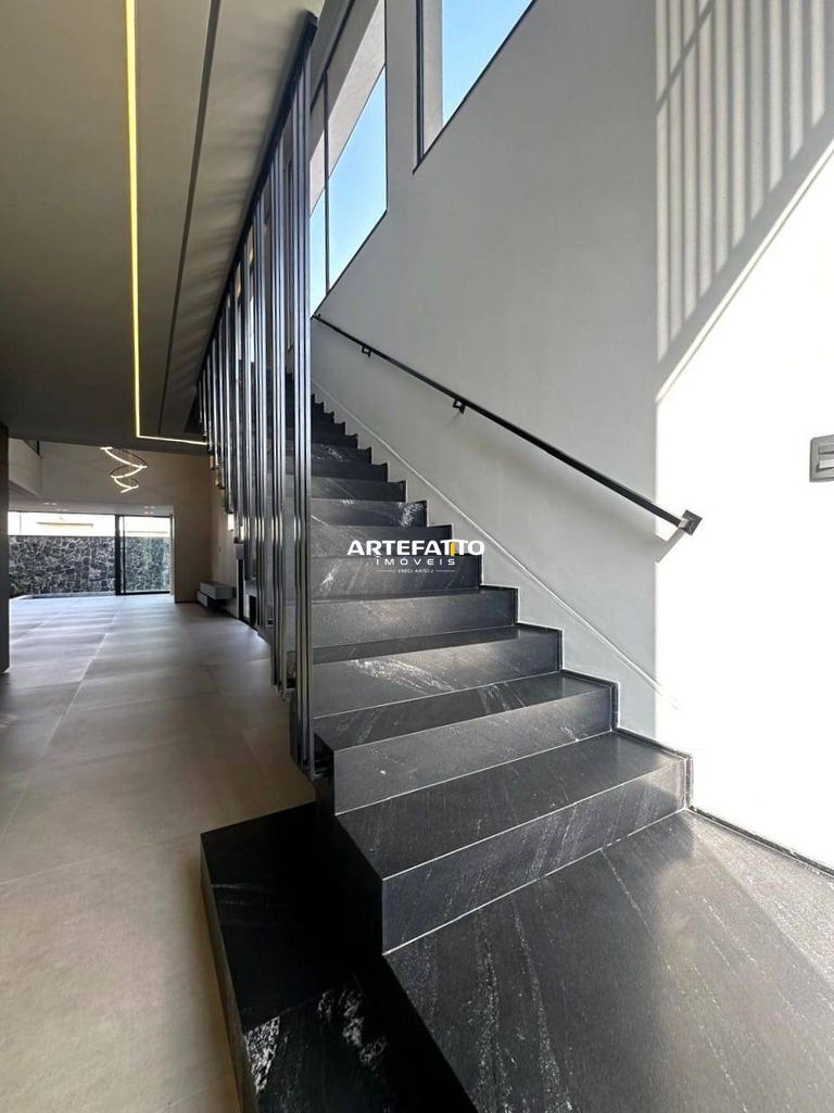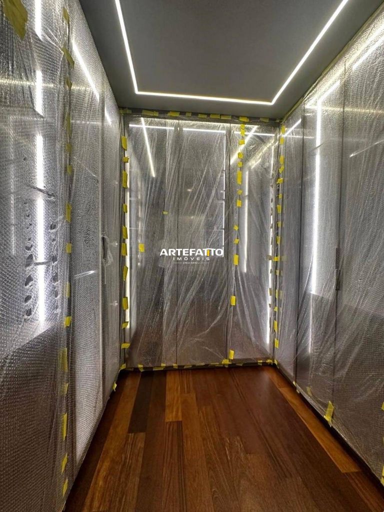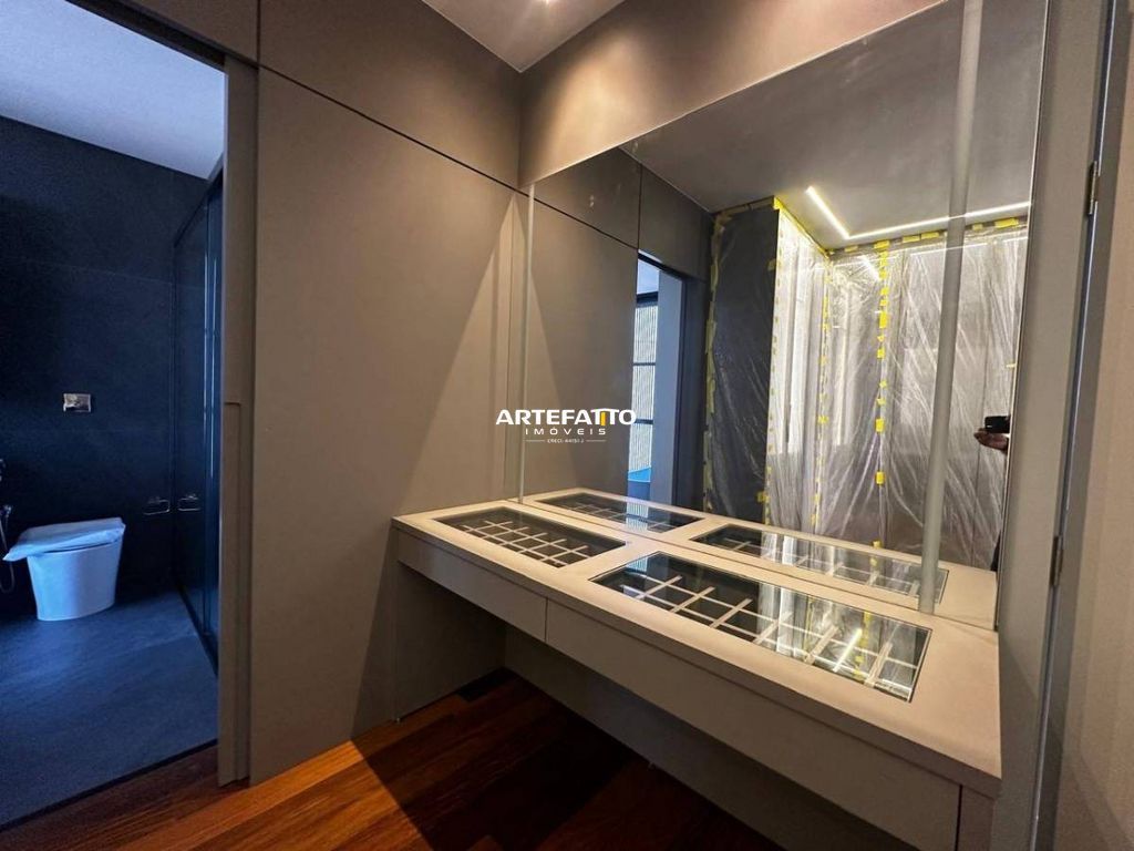 O imóvel tem 4 quartos, sendo 4 suítes, possui 5 banheiros, 2 salas e 4 vagas de garagem.