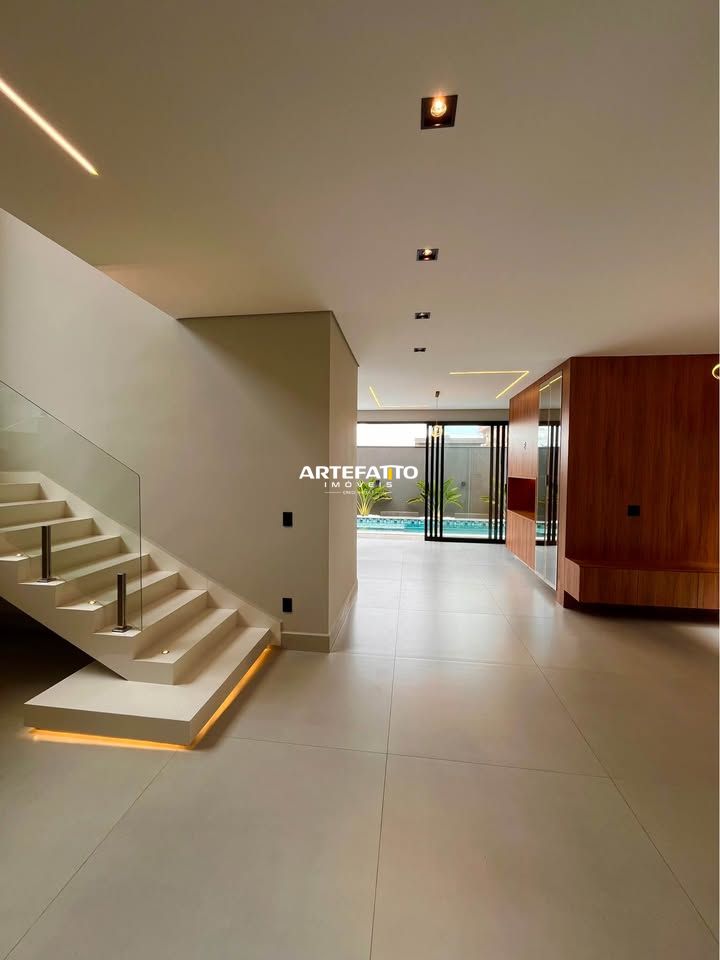 O imóvel tem 4 quartos, sendo 4 suítes, possui 5 banheiros, 2 salas e 4 vagas de garagem.