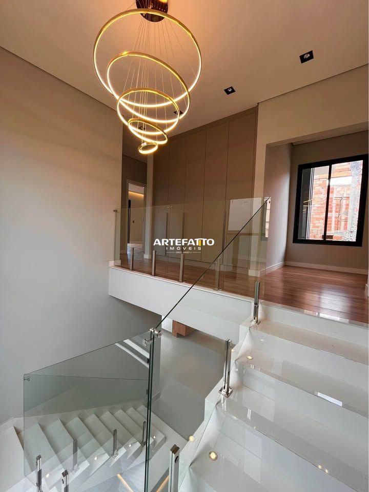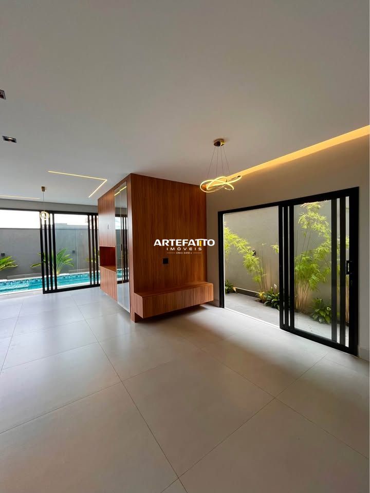 O imóvel tem 4 quartos, sendo 4 suítes, possui 5 banheiros, 2 salas e 4 vagas de garagem.