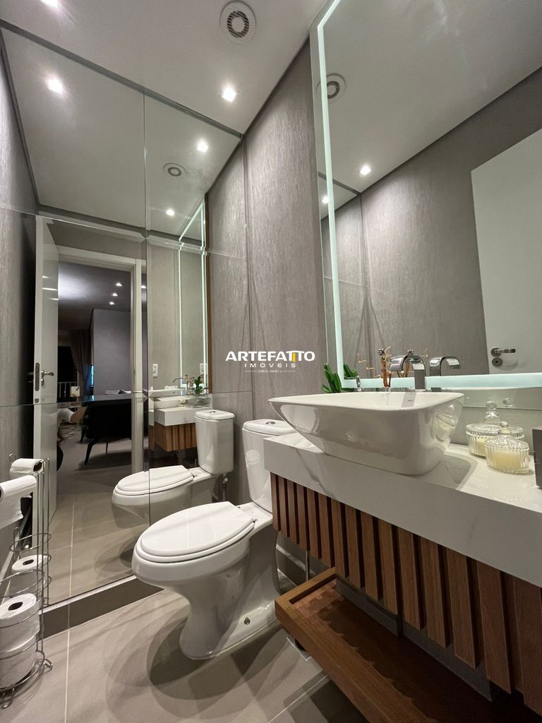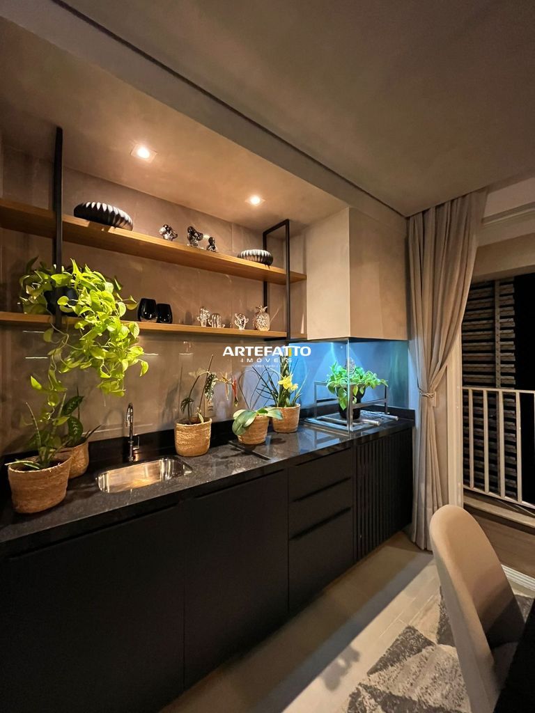 Apartamento mobiliado, pronto para morar, com vista livre para área verde e pôr do sol. São 110m² muito bem distribuídos: cozinha americana integrada, sala ampla, lavabo, 3 suítes, living gourmet e área de serviço.