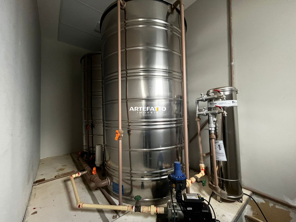 Instalações essenciais para produção alimentícia, tais como: 2 Caixas d'água em inox com filtro e bomba, câmara fria até -25°C, ar condicionado, instalação para gás GLP de 4 botijões