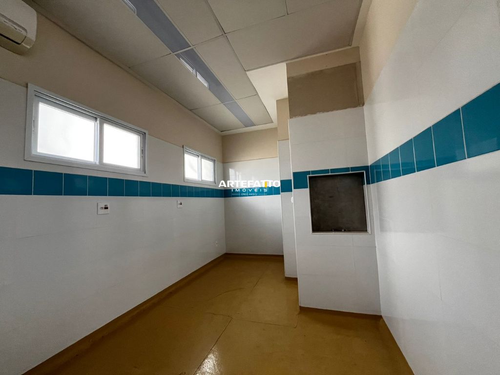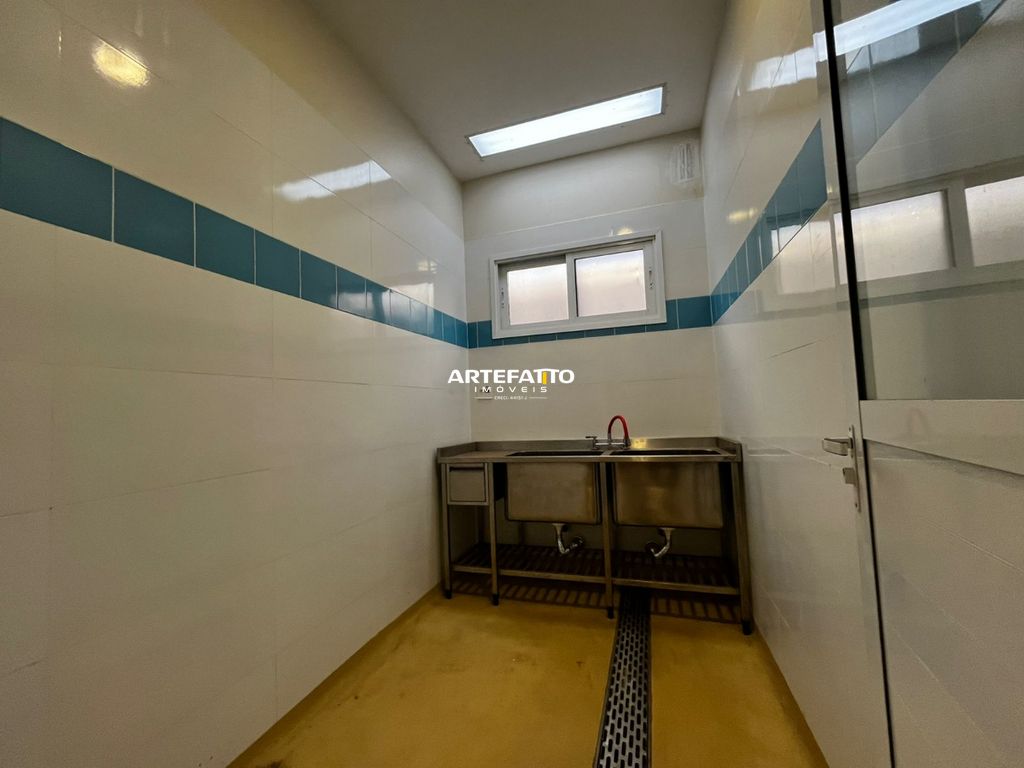 Áreas de produção com revestimento de azulejos, e piso epoxi