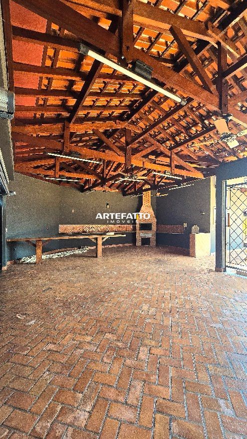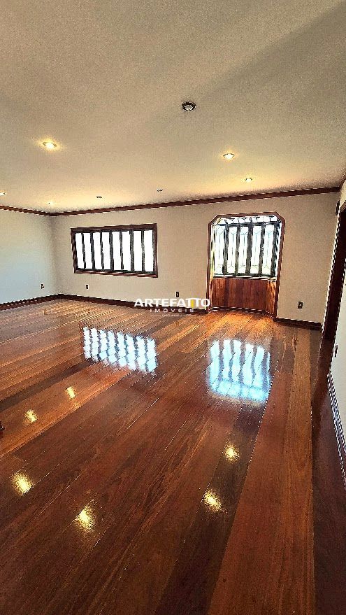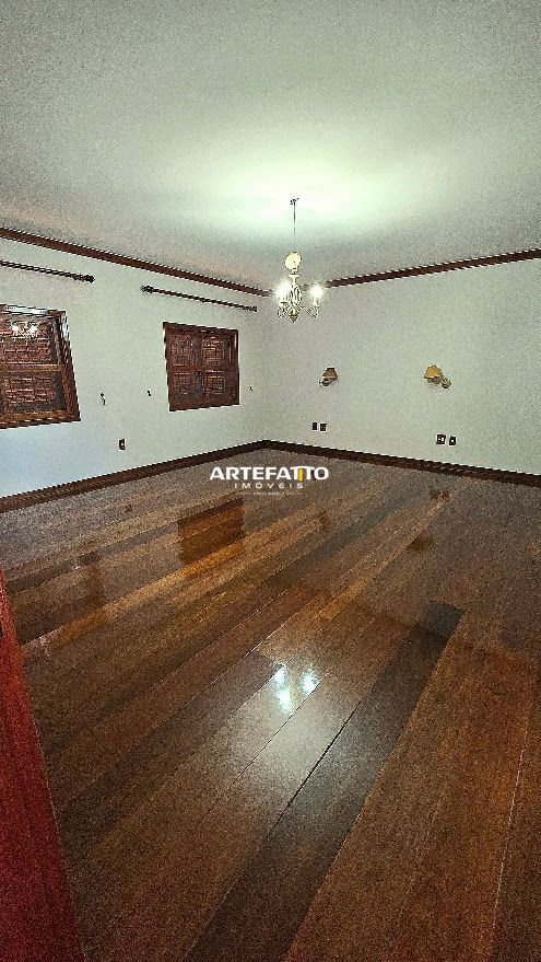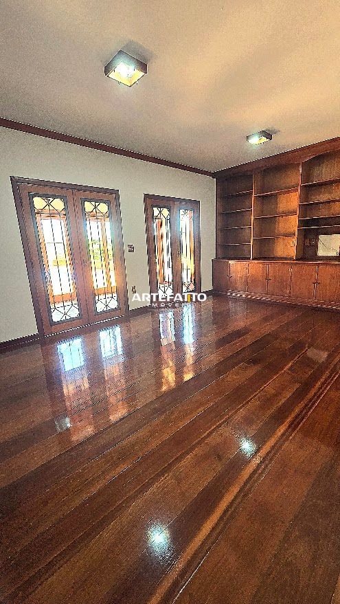 PAVIMENTO TÉRREO: - Hall de entrada com lavabo - 2 amplas salas integradas - Sala privativa com banheiro - Ampla cozinha com móveis planejados - Dispensa - Lavanderia - Ampla área de churrasco - Amplo terraço com jardins, piscina, sauna e banheiro - Garagem para 6 veículos