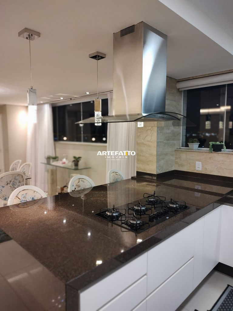 - Cozinha gourmet com ilha central e eletrodomésticos